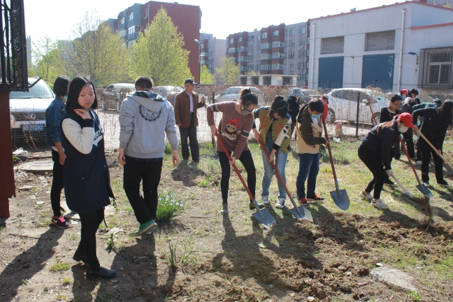 “春暖迎世园,花开中国梦”。在全民共筑中国梦,唐山喜迎世园会的关键时期,社科部党总支与高新区惠安楼社区干部群众共同开展“争做‘两个先锋’,我为世园会添光彩”活动。2016年4月14日上午,在社科部教工党支部书记宋晓敏的带领下,部分教师和学生党员来到惠安楼社区,与社区干部群众共同清理社区花园,种植花草,美化社区环境。