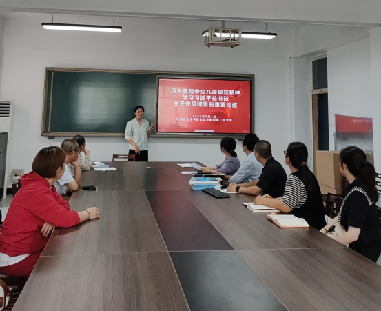 yl8858永利集团教师第二党支部书记王红向面向支部成员讲授了《深入贯彻中央八项规定精神 学习习近平总书记关于作风建设的重要论述》主题党课。党课从三个方面展开:一是深刻领会开展深入贯彻中央八项规定精神学习教育的重大意义;二是十八大以来贯彻落实中央八项规定精神、深化作风建设的历程与成效;三是永远在路上:进一步加强党的作风建设的几个着力点。并引用习近平总书记在十八届中纪委六次全会上的讲话“民心是最大的政治,正义是最强的力量,只要我们管党治党不放松、正风肃纪不停步、反腐惩恶不手软,就一定能赢得这场输不起也决不能输的斗争!”鼓励广大教师深入学习中央八项规定精神,秉承着作风建设永远在路上的理念,严于律己,恪守原则。