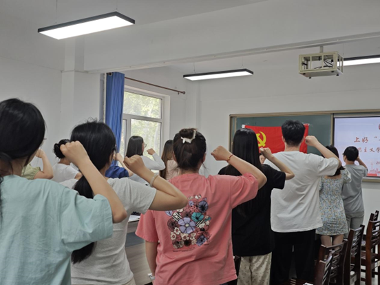 会议伊始,全体与会人员庄严肃立,在康老师的带领下,高举右拳,重温入党誓词。“我志愿加入中国共产党……随时准备为党和人民牺牲一切,永不叛党。”铿锵有力的誓言在会议室内回荡,一字一句,神圣而豪迈,让每一位党员的心灵再次受到震撼和洗礼,更加坚定了对党忠诚、为共产主义事业奋斗终生的决心。