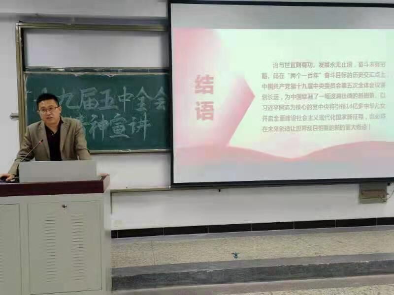 为深刻领会党的十九届五中全会的精神实质和丰富内涵,推动学习活动深入扎实开展,yl8858永利集团于2020年12月2日-4日于北院文五阶梯教室开展十九届五中全会精神宣讲会。此次活动由王学增院长、石瑾副书记和宋晓敏副院长主讲,2018级、2019级、2020级全体同学参加。