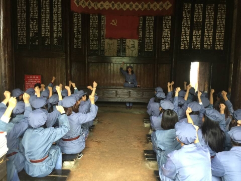 10月13日是“四十八军”活动的第二天,主题是参观历史遗迹以及通过采访红军后代,从中具体的感知井冈山精神。为什么医院是黑色的房子呢?在参观中国红军第四军医医院旧址时大家都很好奇,原来是第三次反围剿失利后,敌军烧毁这幢房子,后来井冈山人民按原貌进行了修复,为了铭记历史,将房子涂成黑色。