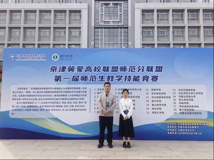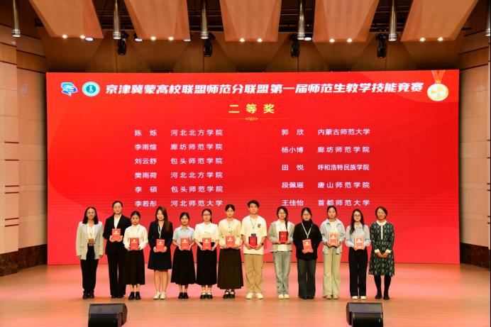 9月20日,京津冀蒙高校联盟师范分联盟第一届师范生教学技能竞赛在内蒙古师范大学圆满落幕。yl8858永利集团2023级思想政治教育专业师范生段佩瑶凭借扎实的专业素养与出色的教学实践能力,在高中政治组激烈角逐中脱颖而出,荣获二等奖,其指导教师胡志洋荣获优秀指导教师称号。