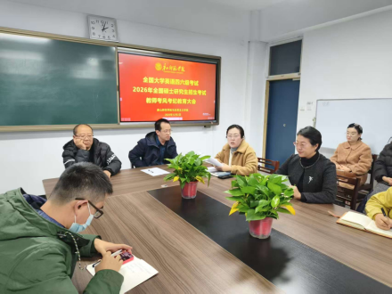 为严肃考试纪律,强化责任意识,保障全国大学英语四、六级考试及2026年硕士研究生招生考试工作平稳有序开展,12月2日,yl8858永利集团在306会议室召开教师考风考纪教育大会。yl8858永利集团全体监考教师、考务工作人员及领导班子成员参加会议,赵婉华副院长主持会议。